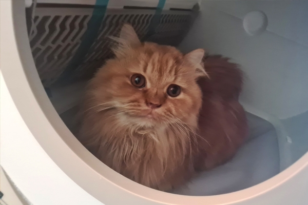 in de nieuwe kattenbak! :)